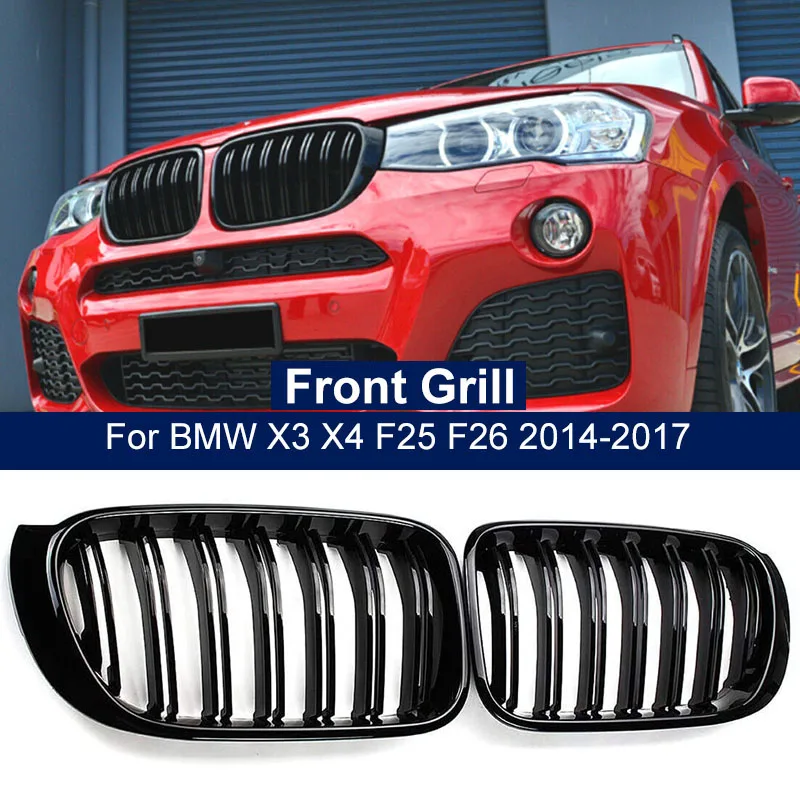 Решетки для переднего бампера автомобиля, двойная линия, глянцевый черный для BMW x3 x4 F25 2014-2017, автомобильные аксессуары