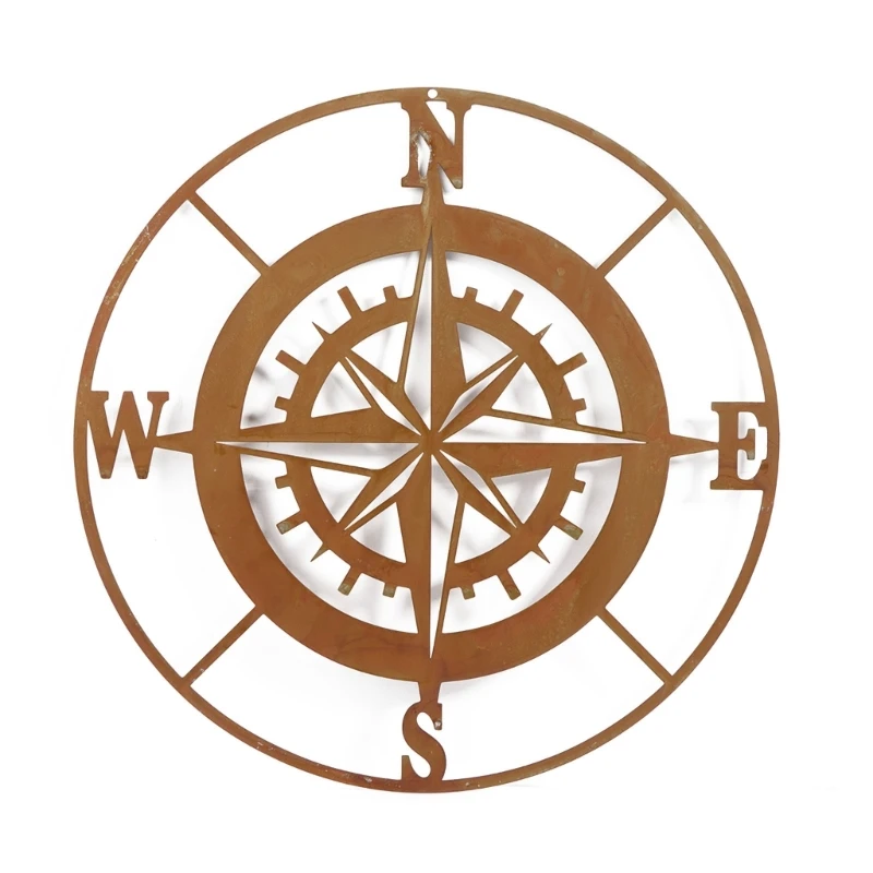 Ржавый Круглый Компас, декоративная металлическая настенная Художественная Скульптура диаметром 11 дюймов, фермерский Декор для дома и ули...