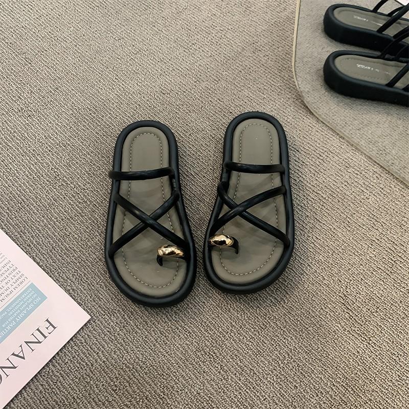 Римские сандалии тапочки популярные нескользящие универсальные пляжные легкие модные крутые тапочки для улицы 2025 модели высокого класса 40 чёрный