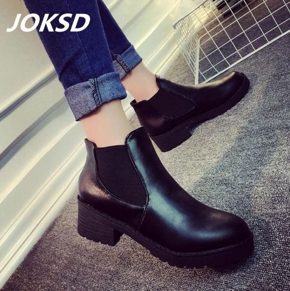 boots joksd botas mujer 2021 fashion women round head thick bottom pu leather waterproof woman l180, Black