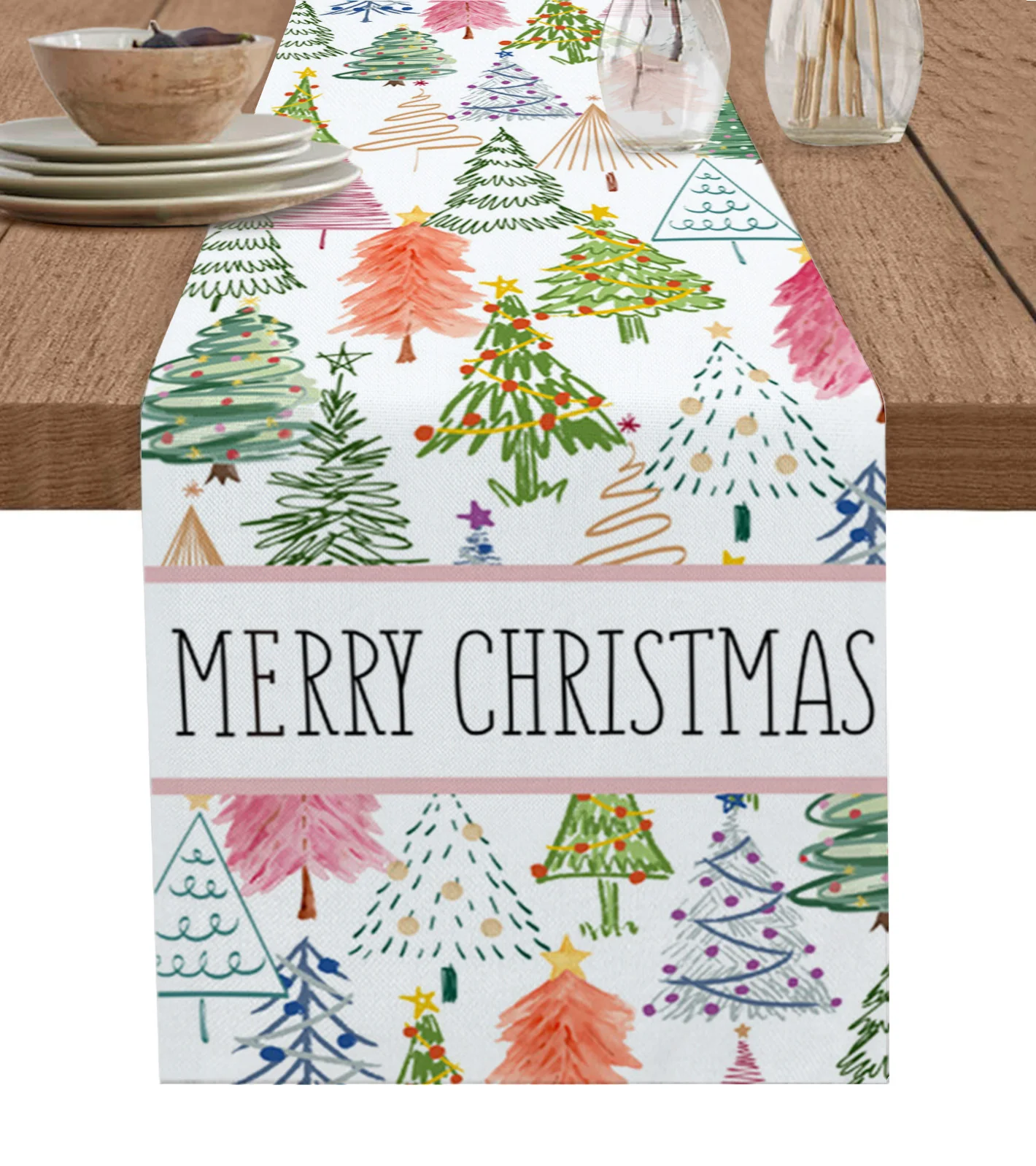 Рождественская елка, скатерть ручной работы, Свадебный декор, скатерть, Рождественский обеденный стол, Декор, льняная скатерть