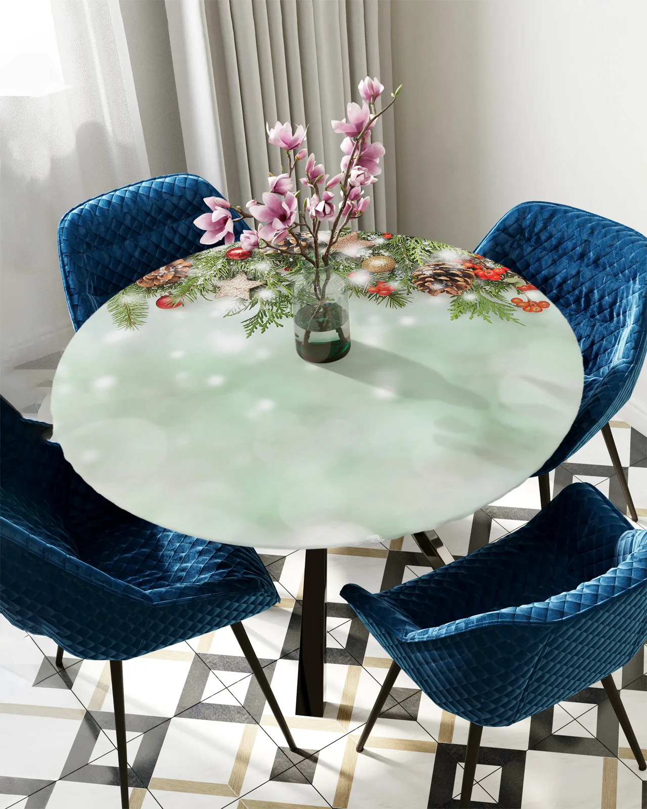 Рождественская зимняя тема круглая скатерть со снежинками кухонная Водонепроницаемая скатерть Рождественский Декор для стола эластичная скатерть
