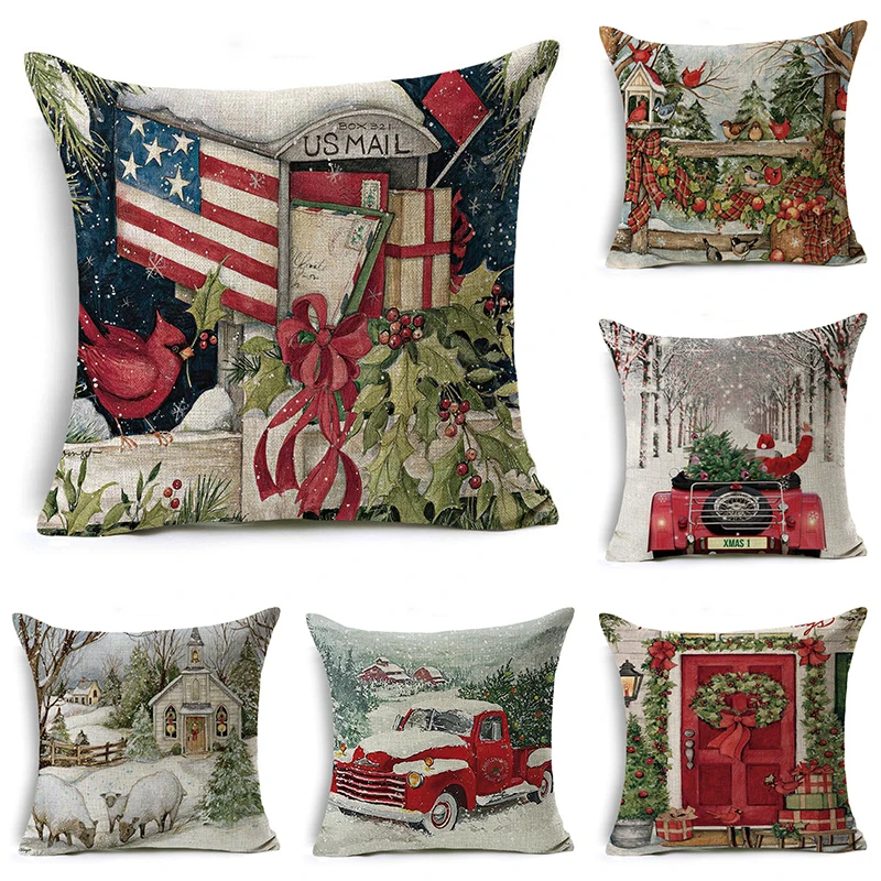 Рождественская наволочка Санта-Клаус диван Автомобильная подушка домашний декор льняная фотоподарок