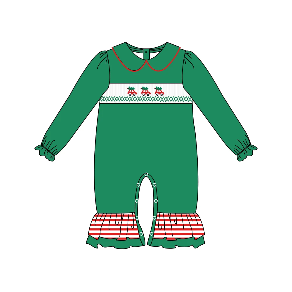 Рождественская одежда, детский комбинезон, детская одежда с рисунком Санты и грузовика, длинные брюки с круглым вырезом для девочек, бутик