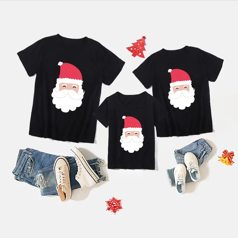 Рождественская одежда для всей семьи; Летняя Повседневная футболка с короткими рукавами и черным воротником; Модная праздничная одежда с р...