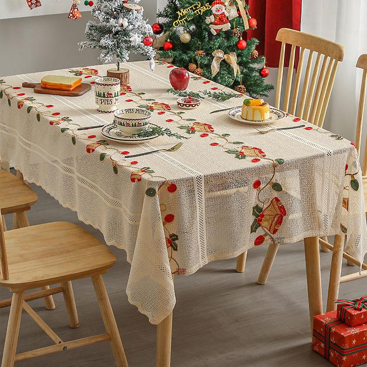 Рождественская скатерть, вышивка колокольчиками, домашняя нескользящая кружевная прямоугольная декорация, гостиная, журнальный столик, коврик для обеденного стола 140*100