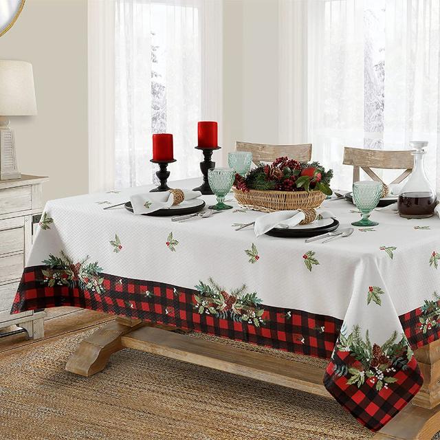 Рождественская скатерть с клетчатым венком и каймой, прямоугольный обеденный стол, устойчивая к пятнам декоративная скатерть для летнего ужина 40x70cm15x27inch