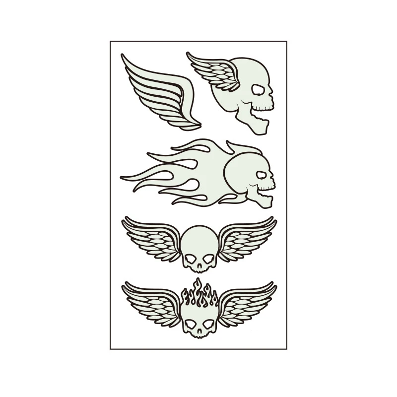 Waterproof Temporary Luminous Tattoo Sticker Skull Wings Halloween Horrible Pattern Flash Fake Tatto for Women Men