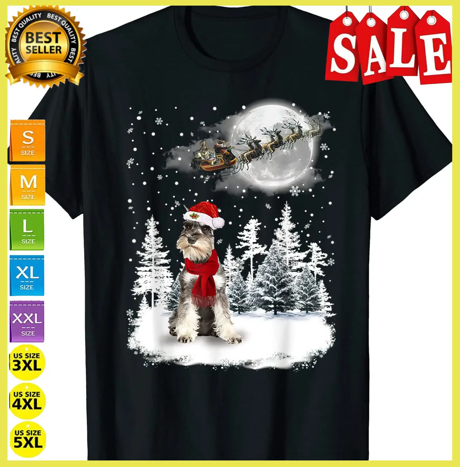 Рождественская футболка с изображением шнауцера на снегу