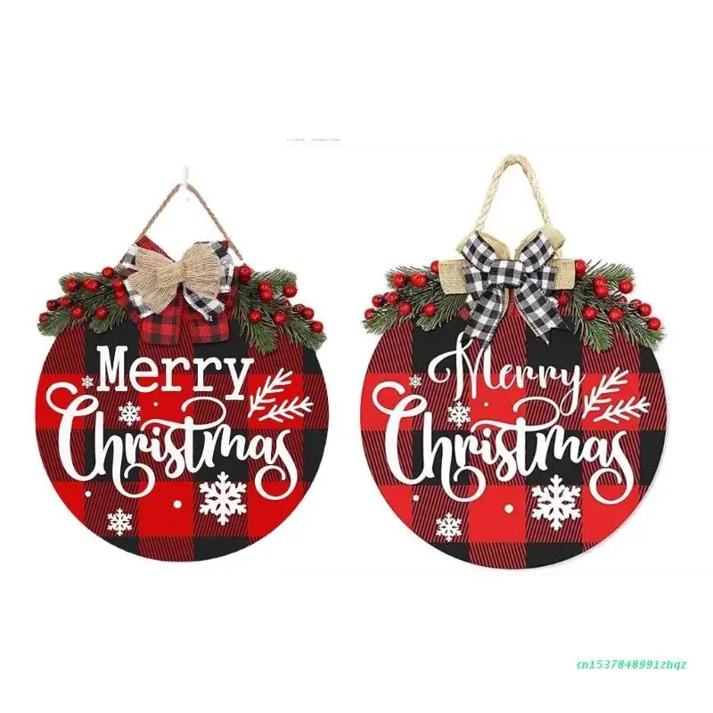 Рождественские Подвески в клетку буйвола, вывеска, деревенский деревянный праздничный декор для двери