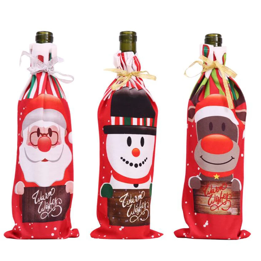 Рождественские Чехлы для винных бутылок, чехол для винных бутылок с принтом, декоративный чехол для рождественской вечеринки