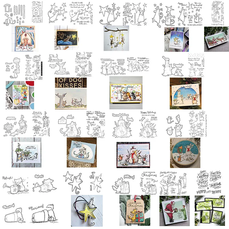 Рождественские металлические Вырубные штампы с животными и соответствующий штамп для скрапбукинга, ремесло, тиснение, трафарет, высечка, изготовление карт