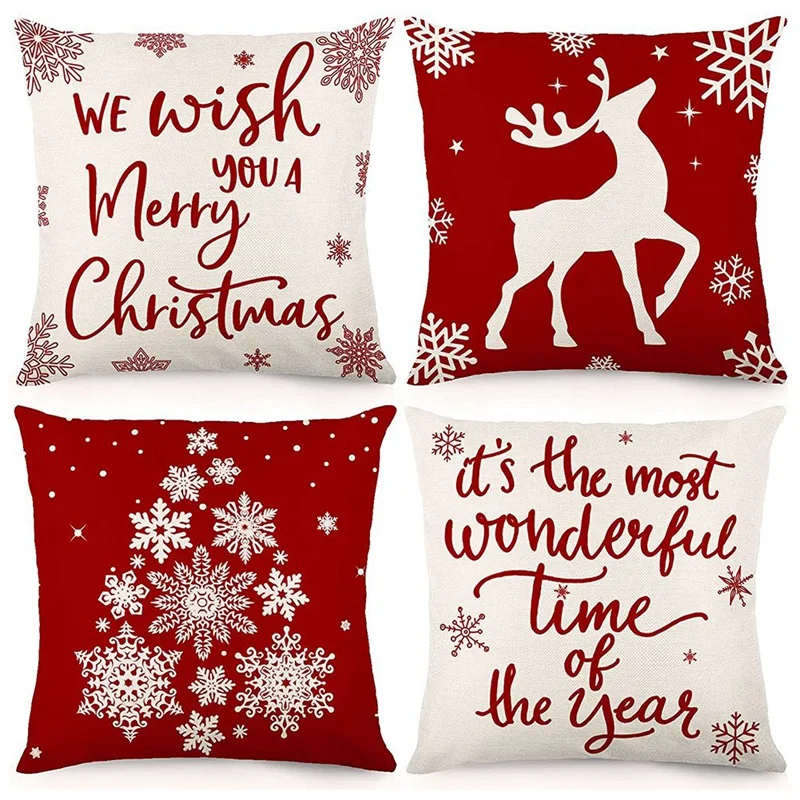 Рождественские наволочки 18x18, набор из 4 предметов, рождественские украшения, наволочка для дома