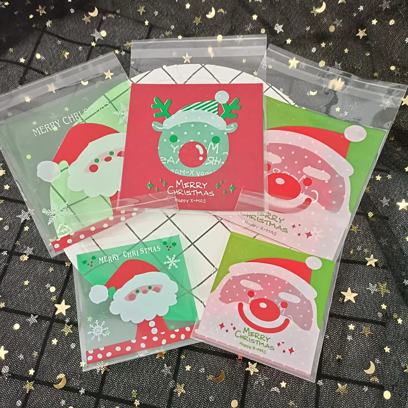 Рождественские подарочные пакеты для конфет, печенья, Пластиковые самоклеящиеся пакеты для упаковки печенья, закусок, Новогодние рождеств...