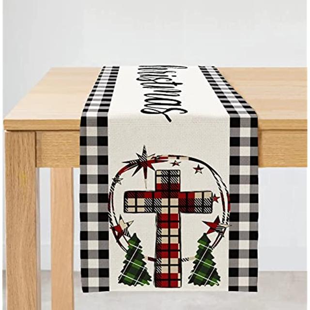 Рождественские украшения Настольная дорожка Черно-белый клетчатый коврик для стола Интерьер фермерского дома Ретро Праздничная тематическая вечеринка Настольная дорожка 150x33cm59x13inch