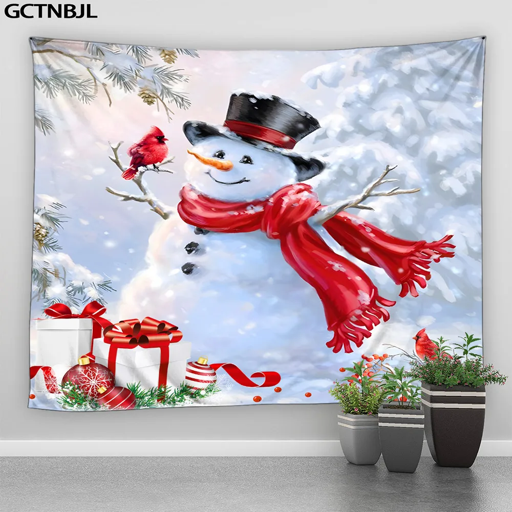 Рождественский гобелен настенный снеговик новогодний фон декоративный спальня гостиная домашний декор тканевый настенный гобелен