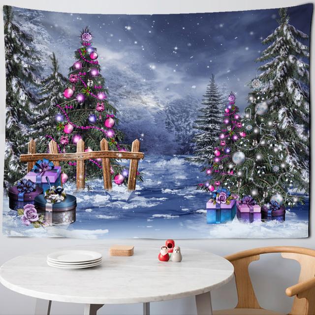 Рождественский гобелен со снеговиком, иллюстрация, психоделический лес, настенный милый мультяшный праздничный подарок, домашний декор для гостиной и комнаты 95x70 Cm