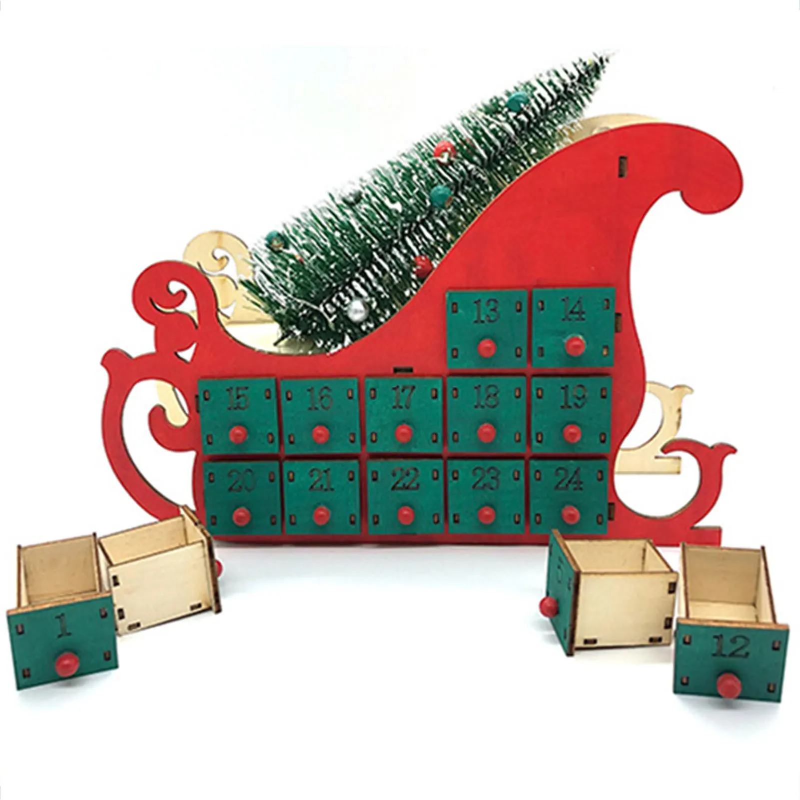 Рождественский деревянный календарь, 24 выдвижных ящика со светодиодной подсветкой для детей и взрослых