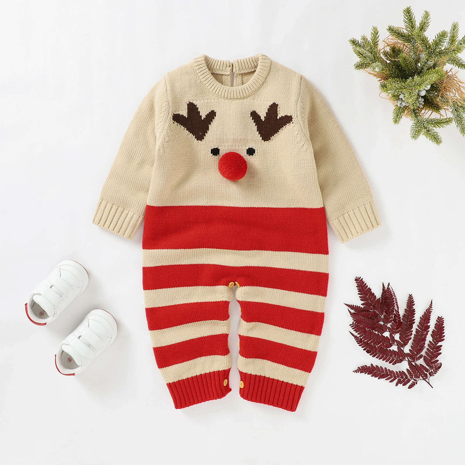 Рождественский комбинезон для маленьких девочек и мальчиков, Рождественский Вязаный комбинезон на пуговицах с длинным рукавом, Повседневн...