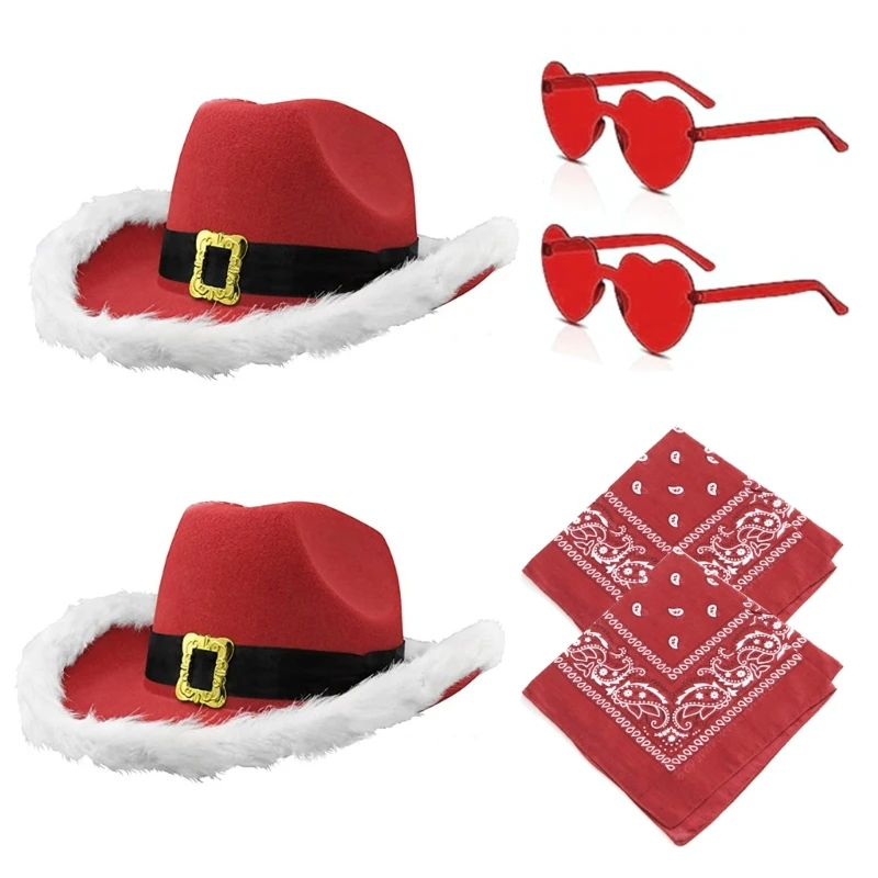 Рождественский костюм Санта-Клауса со светодиодной подсветкой, ковбойская шляпа, солнцезащитные очки в форме сердца, набор
