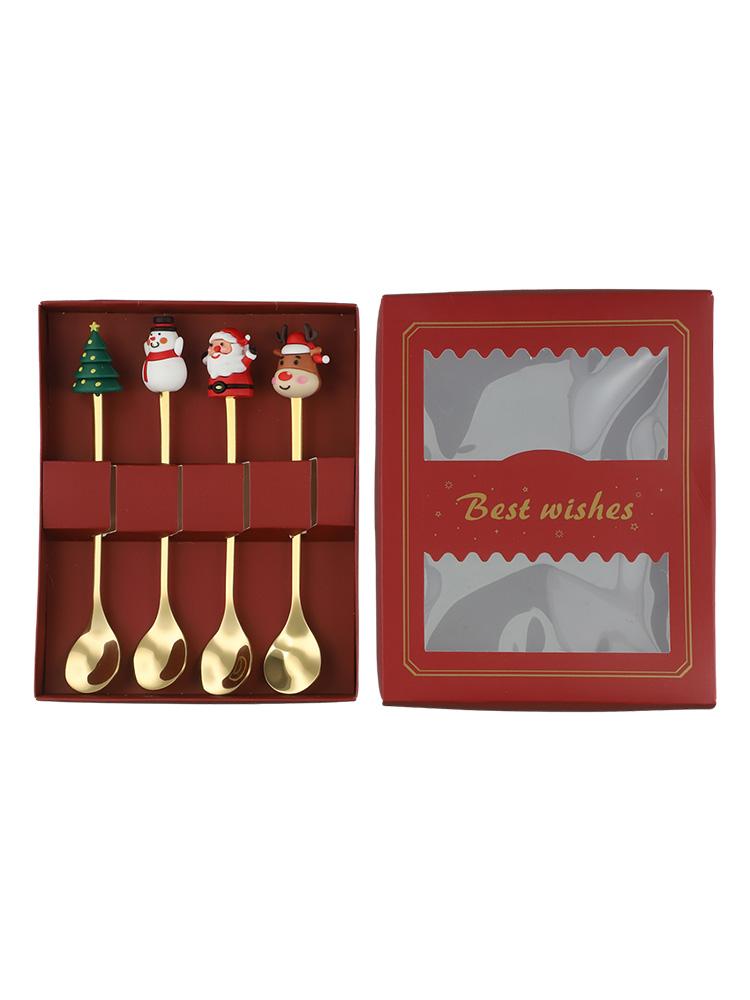 Рождественский набор чайных ложек из нержавеющей стали с милыми узорами в виде снеговиков на елке