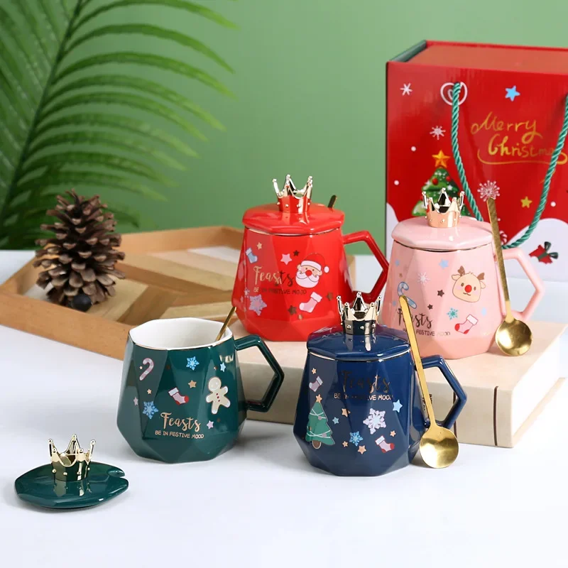 Рождественский подарочный набор, керамическая чашка с крышкой и ложкой, мультяшная кружка, чашка для воды, подарок