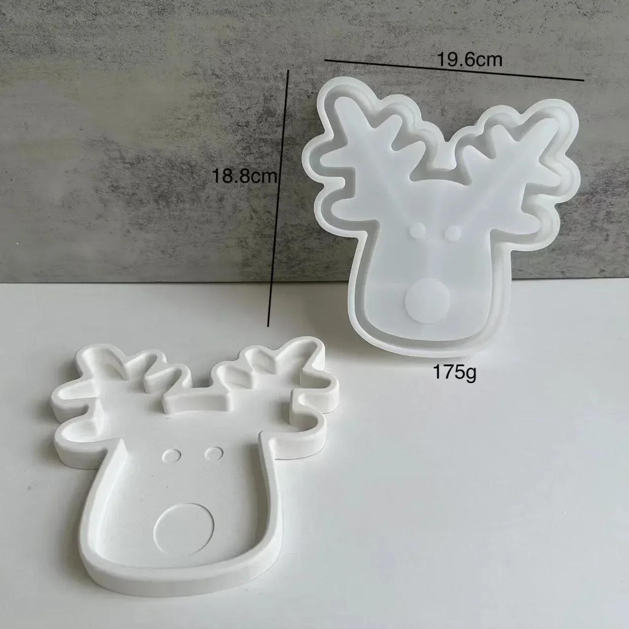 Рождественский поднос в виде лося Силиконовая форма Милая голова оленя Поднос для хранения орехов Цементная форма Украшение для дома DIY Тарелка терраццо Глиняная форма