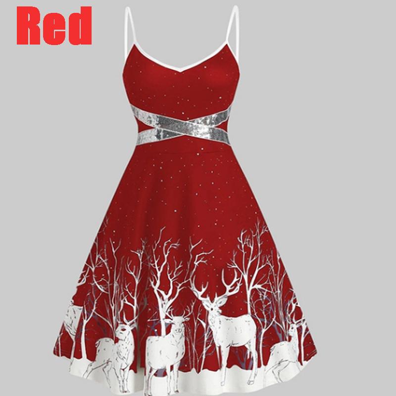 Рождественский принт с пайетками в стиле пэчворк, платье без рукавов, Санта-Клаус, рождественский олень, белое праздничное платье из лося S красный