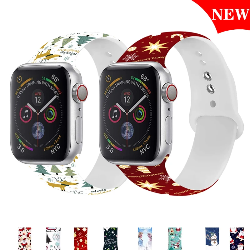 Рождественский силиконовый ремешок для Apple Watch band 44 мм 40 мм 42 мм 38 мм, мультяшный резиновый браслет для iwatch apple watch 6 5 4 3 2 1