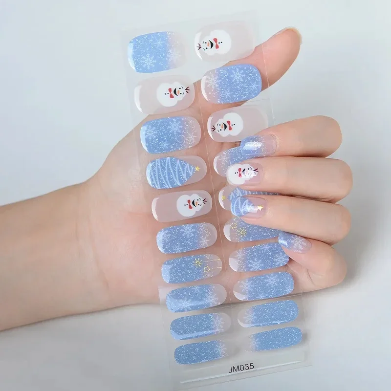 Рождественский снеговик снежинки для ногтевого дизайна полузатвердевающий Гель-лак для ногтей простые цветные клейкие гелевые наклейки для ногтей Набор для УФ-лампы необходимо