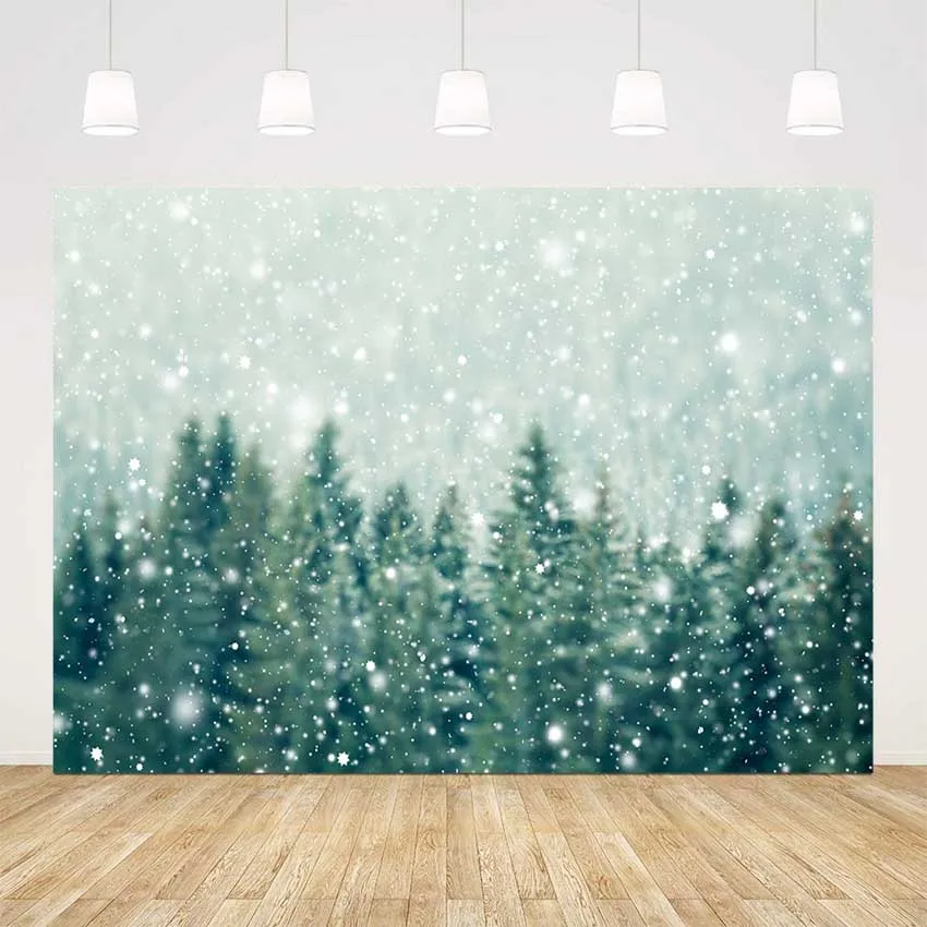 Рождественский фон для фотосъемки сосновый лес Зимний снег фон для фотостудии Снежинка портрет для фотографии
