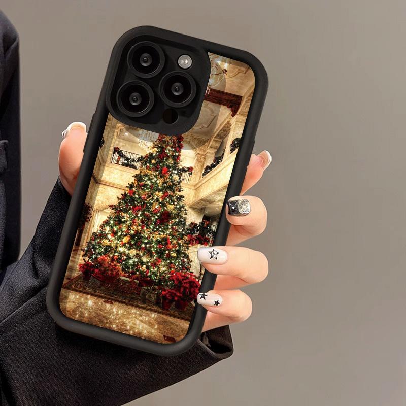 Рождественский чехол для iPhone 11 13 12 14 15 16 Pro Max XR XS Samsung A15 A55 A05 Redmi 12 13C OPPO A16 A18 A60 Reno 11 Vivo Y17S Y12 infinix note Tecno Spark 30C 4G чёрный