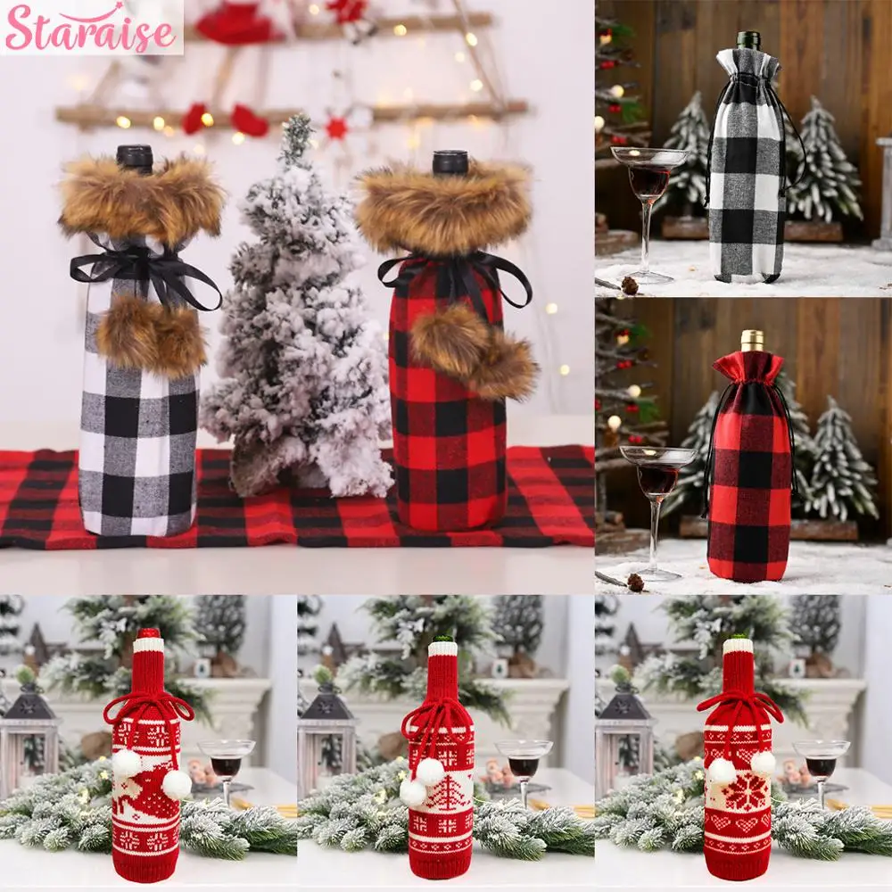 Рождественский чехол Staraise в красно-черную клетку для винной бутылки, Рождественское украшение для дома, новый год 2020, 2021