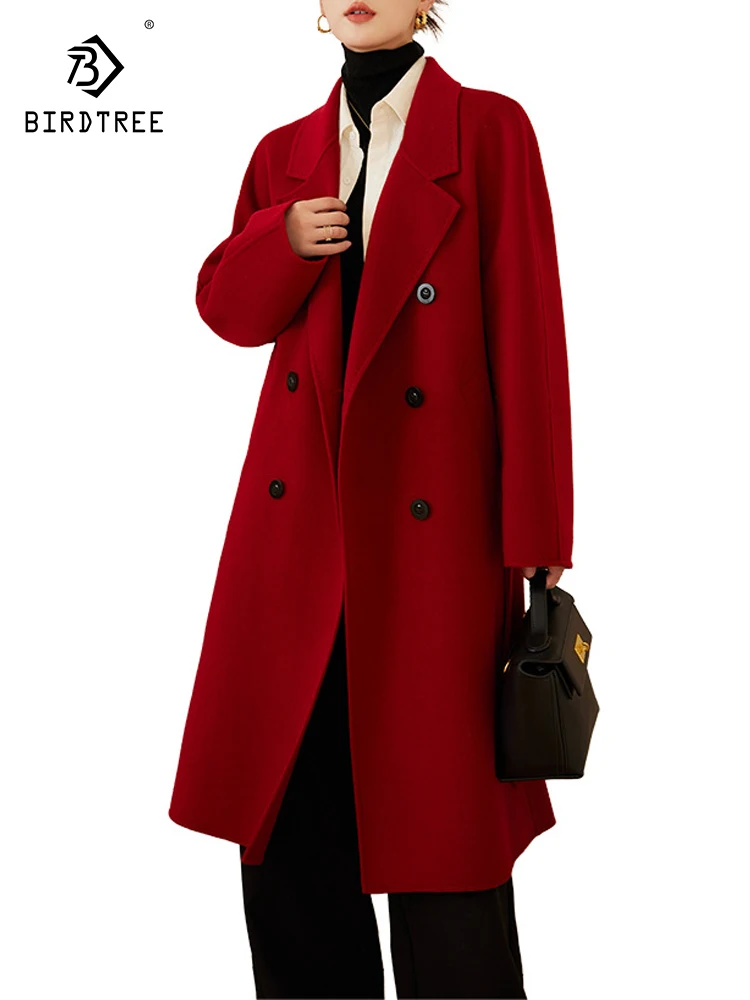 Рождественское красное пальто для женщин, 10% кашемир, 90% шерсть, Осень-зима 2023, длинное двубортное шерстяное элегантное пальто C39537QC