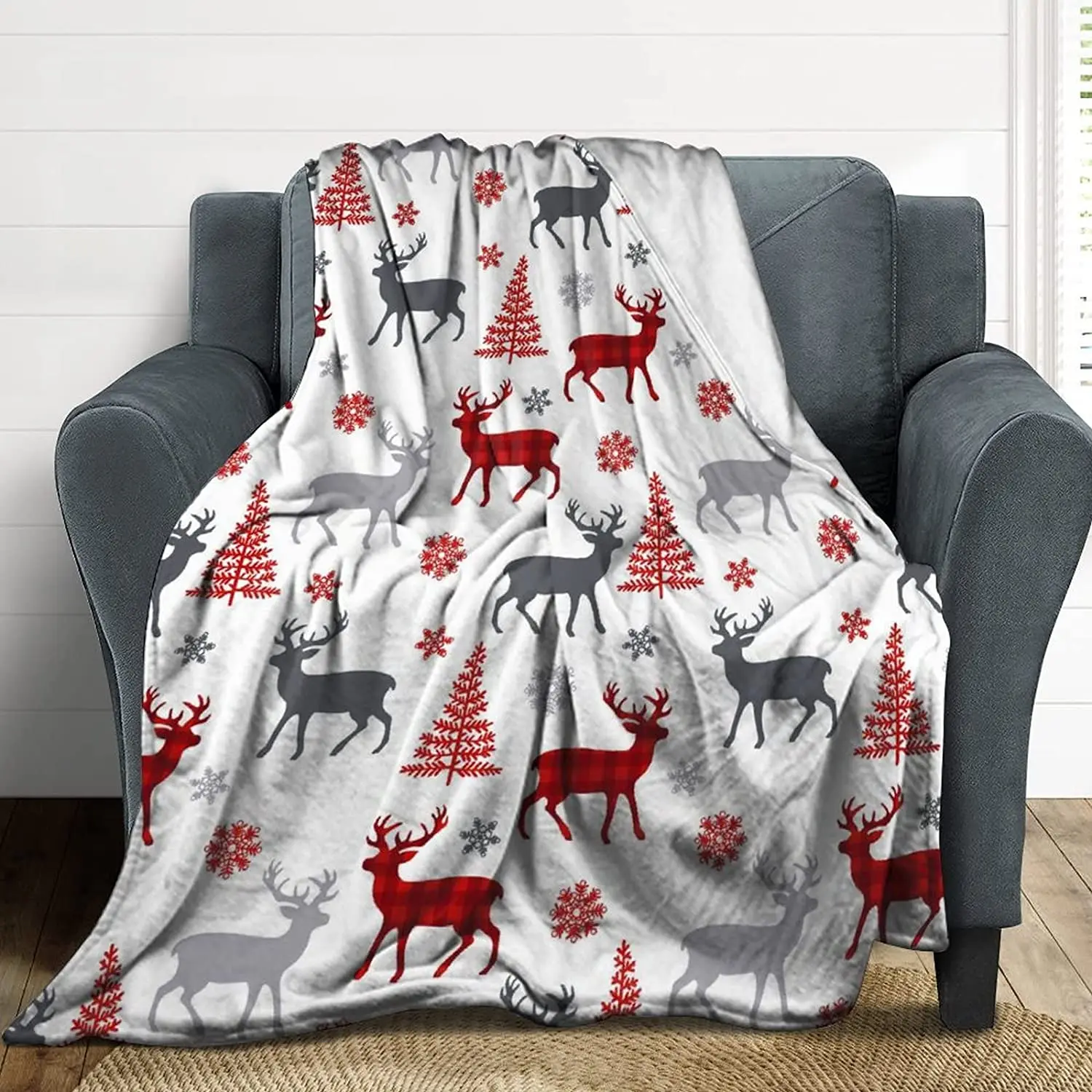 Рождественское мягкое одеяло для дивана, диван, Рождественская елка с оленем, снежинки, раскладное одеяло, пушистое, теплое, уютное, декорат...