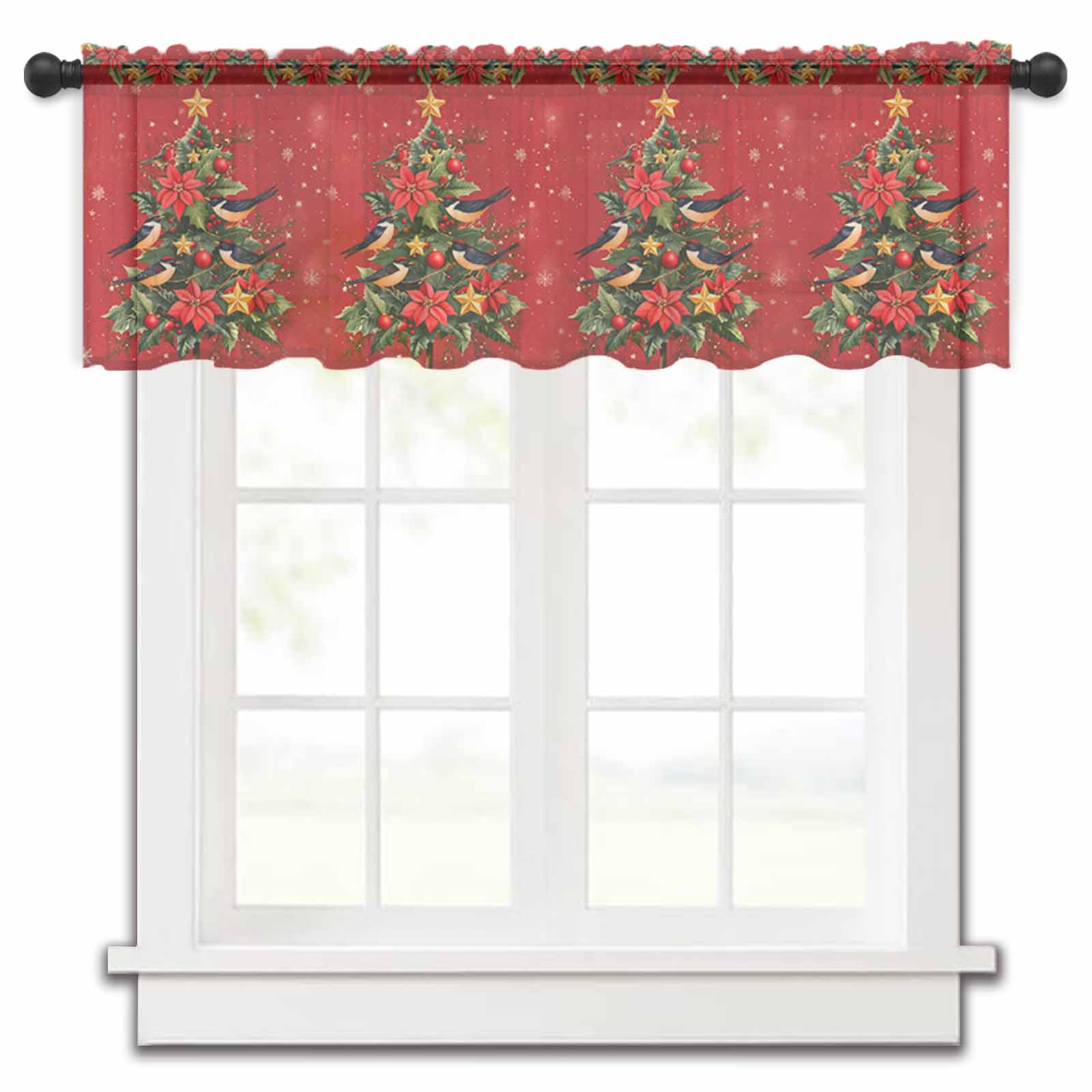 Рождество Зима Снежная сцена Гном Серый Короткий Тюль Оконные Шторы Прозрачная Вуаль Шторы Кухонный Шкаф Домашний Декор Маленькие Шторы 107Wx30H(cm)