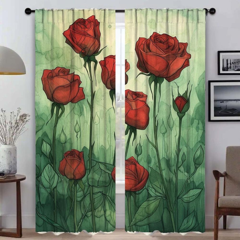 Роза Акварель Элегантные Шторы для Гостиной Оконные Шторы Тюль для Спальни Раздела Украшения Хэллоуина Оттенки W50xH70cmx2pcs-CL