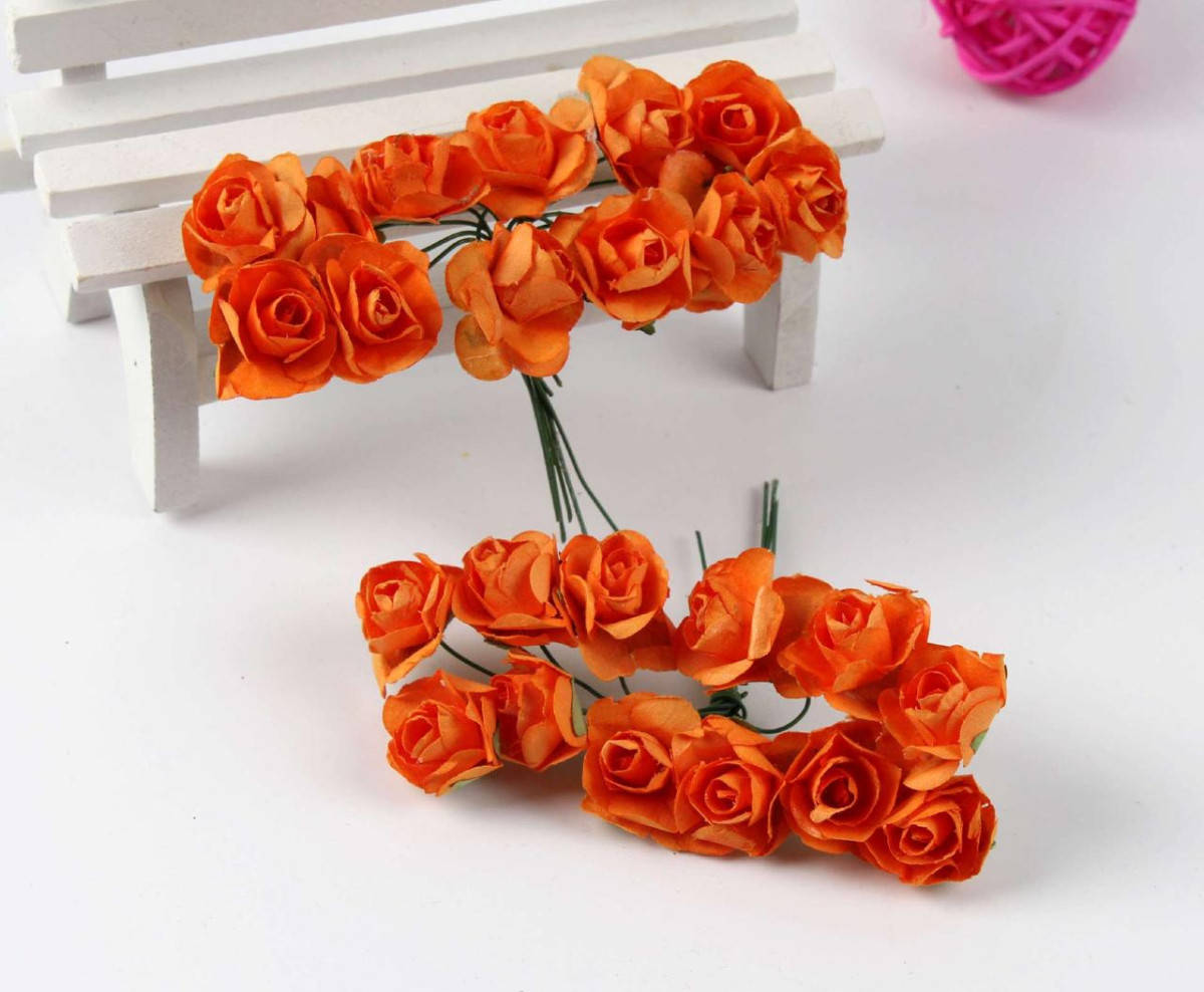 Роза бумажная 1,5см (букет 12шт) Цвет - Оранжевый (сп5нг-2205)