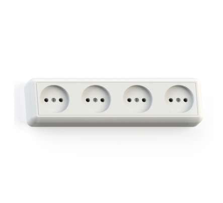Розетка КУНЦЕВО-ЭЛЕКТРО Оптима РА16-402, открытый монтаж, 4-х постовая, 16A, в сборе, IP20, белый (8024), РА16-402