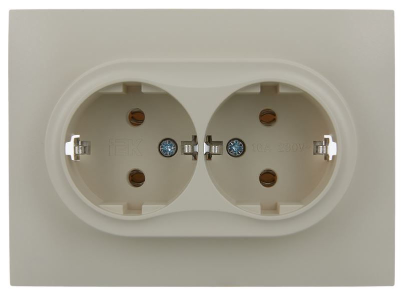 Розетка двухместная с заземлением в сборе IEK SK-R21-16-K10-F SKANDY без защитных шторок 16А SK-R08B бежевая, SK-R21-16-K10-F