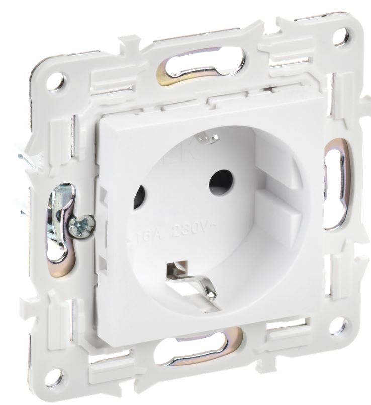 Розетка с заземлением IEK SK-R14-16-1-K01 SKANDY с защитными шторками 16А б/к SK-R06W арктический белый, SK-R14-16-1-K01