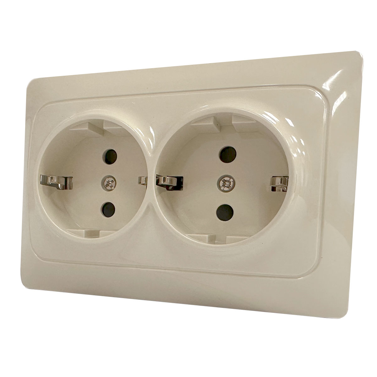 Розетка GUSI Bravo, скрытый монтаж, 2-х постовая, с з/к, со шторками, 16А, механизм розетки с накладкой, IP20, бежевый, 1 шт. (С10Р6-003)