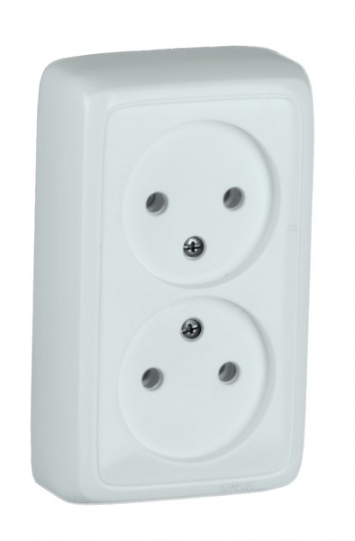 Розетка HEGEL ALFA, открытый монтаж, 2-х постовая, 16A, в сборе с изолирующей пластиной, IP20, слоновая кость (РА16-143-01)