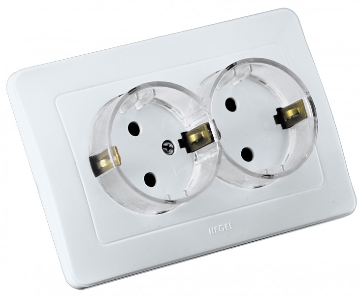 Розетка HEGEL MASTER, скрытый монтаж, 2-х постовая, с з/к, 16A, в сборе, IP20, белый (РС16-381)
