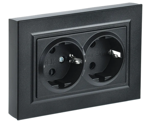 Розетка IEK BRITE РСш12-3-БрЧ, скрытый монтаж, 2-х постовая, с з/к, со шторками, 16A, в сборе, черный (BR-R24-16-K02-F), РСш12-3-БрЧ