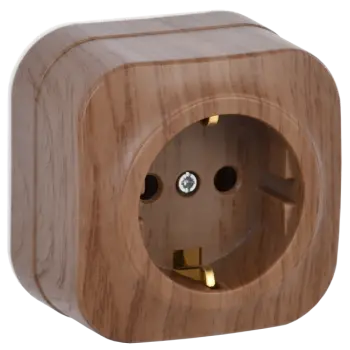Розетка IEK GLORY РС20-3-ХД, открытый монтаж, однопостовая, с з/к, 16A, в сборе, IP20, дуб (ERH11-K24-16), РС20-3-ХД