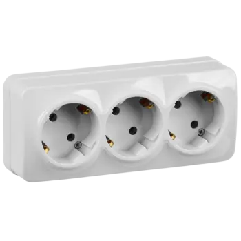 Розетка IEK GLORY РС23-3-ХБ, открытый монтаж, 3-х постовая, с з/к, 16A, в сборе, IP20, белый (ERH31-K01-16), РС23-3-ХБ