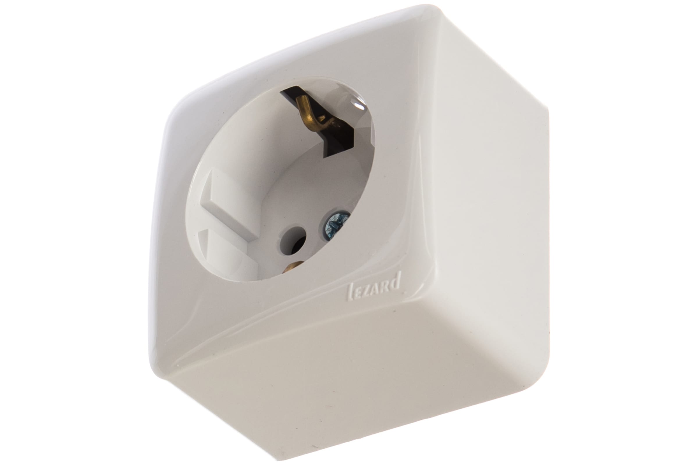 Розетка LEZARD Viola , открытый монтаж, однопостовая, с з/к, 16A, в сборе, IP20, белый (751-0200-122)