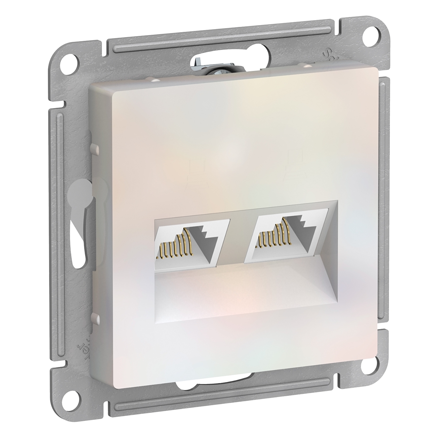 Розетка RJ-45+RJ-45 скрытый монтаж категория 5e, механизм без рамки, жемчуг, Schneider Electric AtlasDesign (ATN000485)