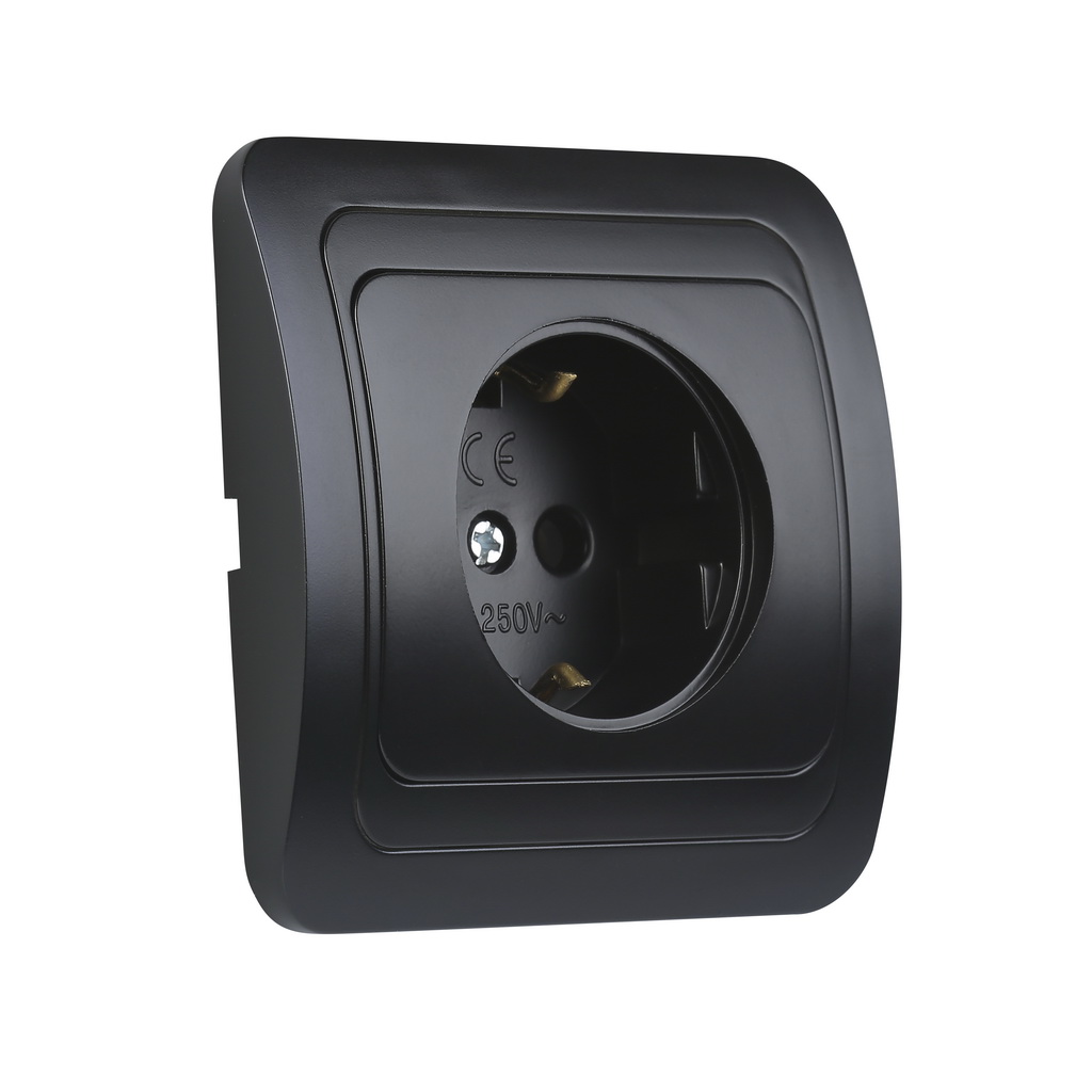 Розетка SMARTBUY Марс, скрытый монтаж, однопостовая, с з/к, 16A, в сборе, IP20, черный (SBE-02b-16-S1-Z-c), 0